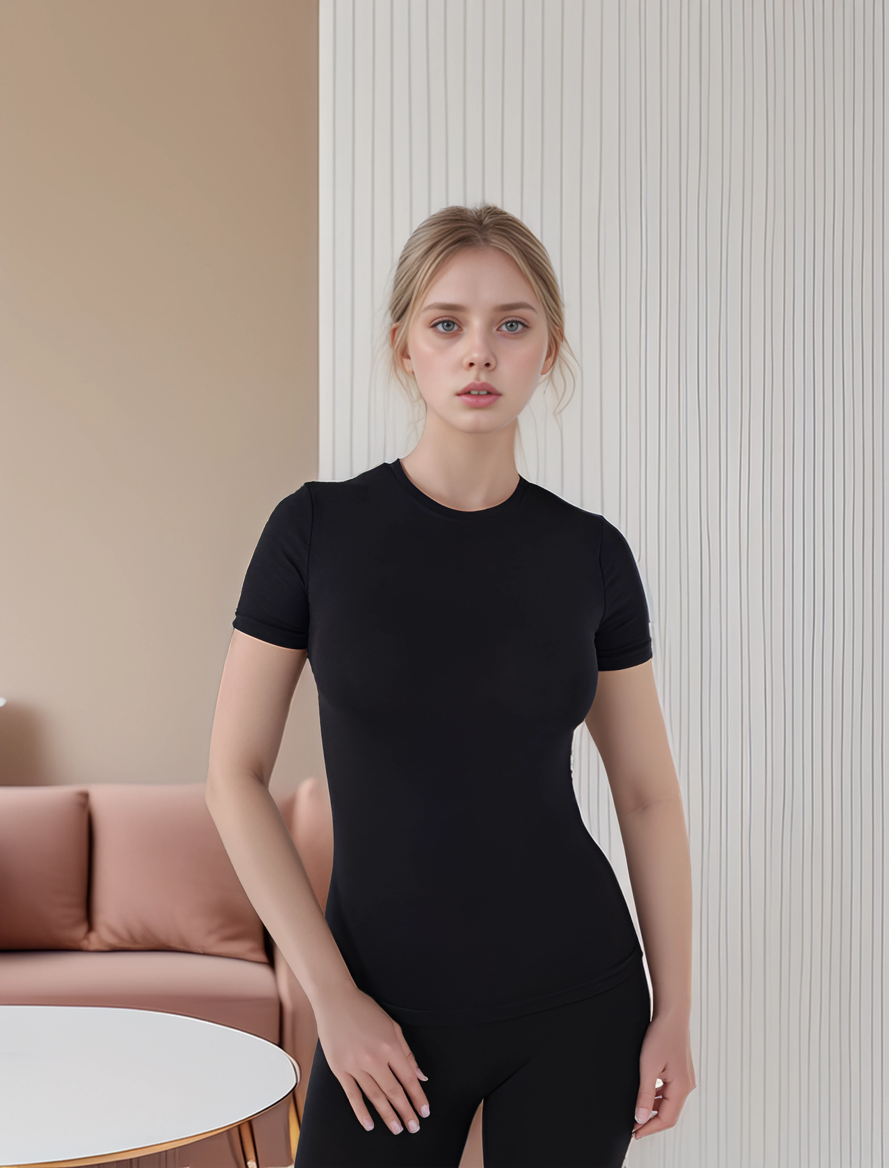Kadın Modal Bisiklet Yaka T-shırt C801-019