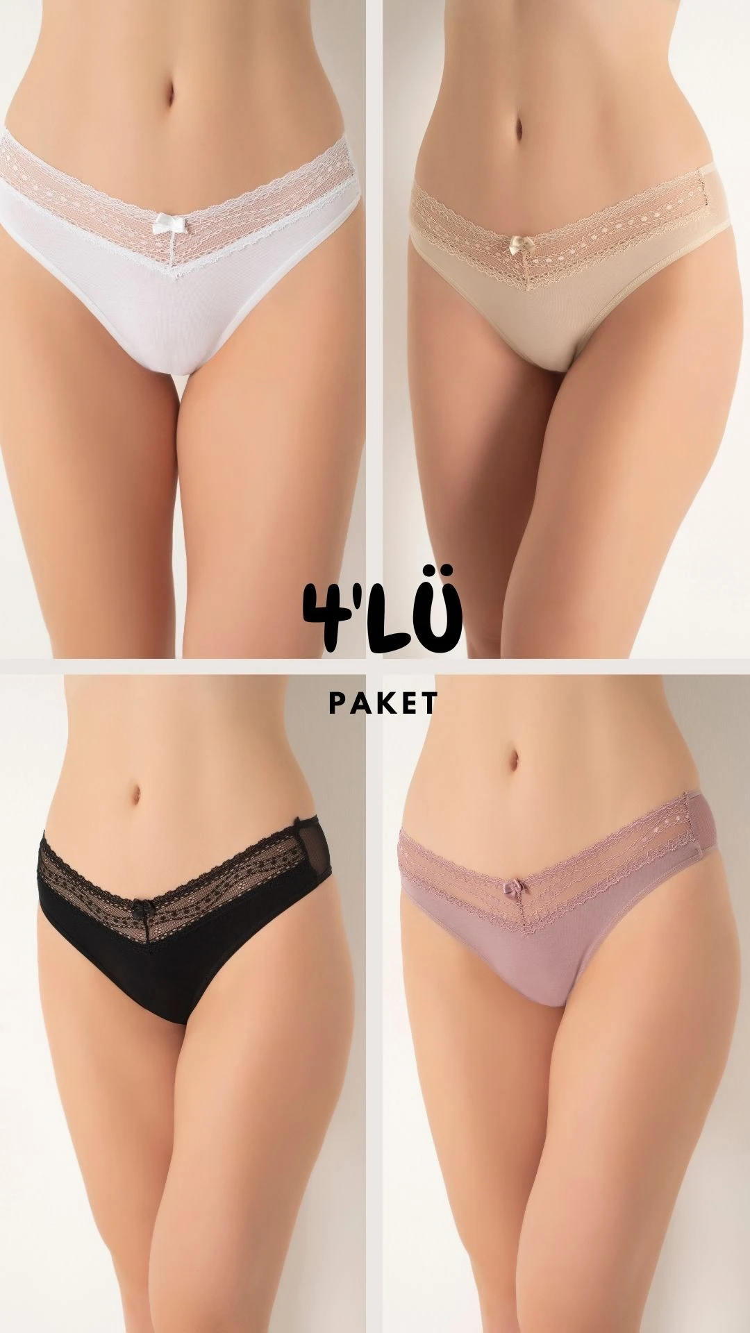 KADIN DANTELLI BIKINI 4 LU PAKET C804-002 - Pamuk ve Elastan Karışımı Konforlu Külot | Rahat, Şık ve Uygun Fiyatlı - İÇ GİYİM