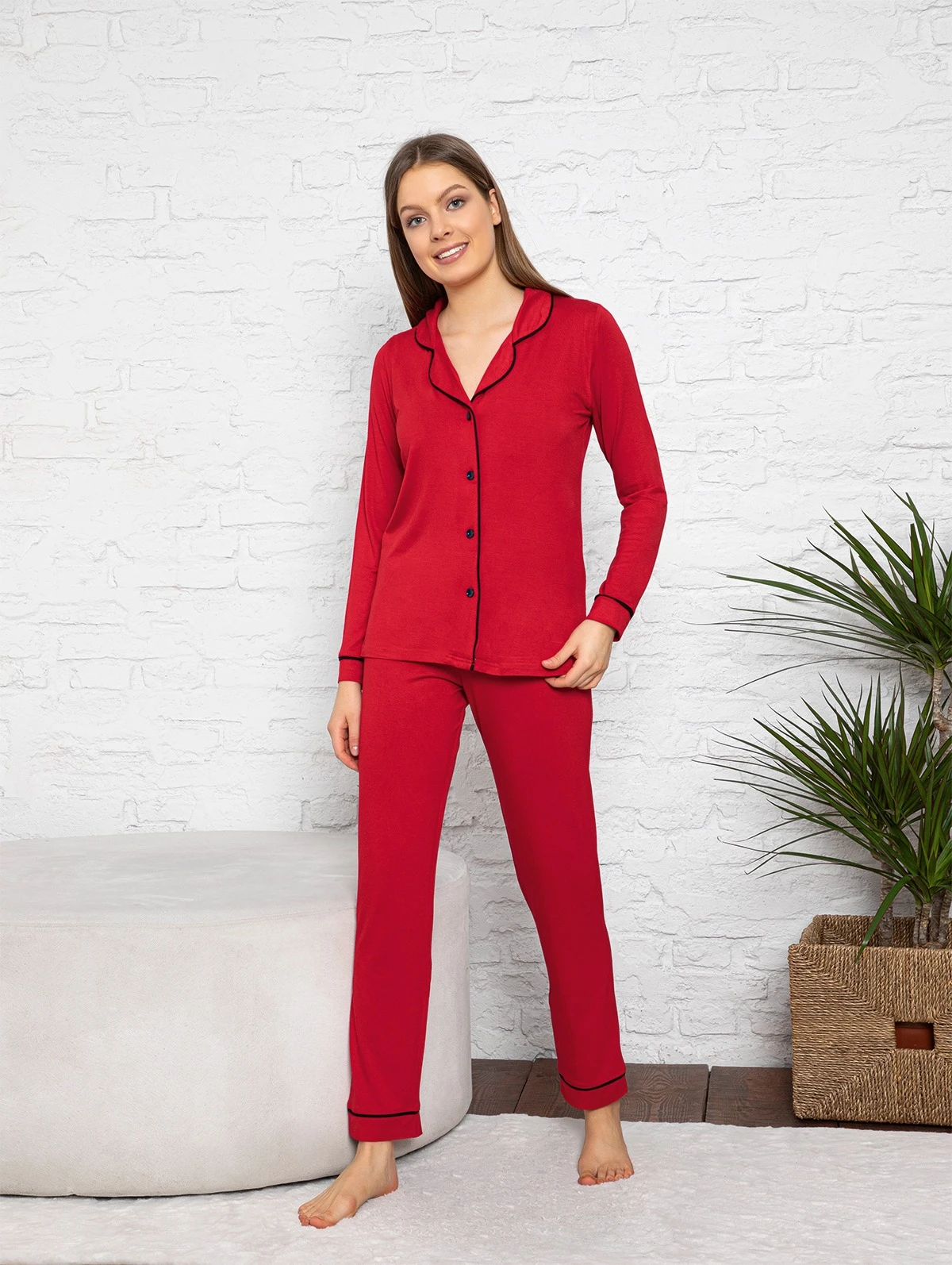 KADIN LYC. VİSKON ÖNÜ DÜĞMELİ UZUNKOL PİJAMA TAKIM C840-058 - Kaliteli ve Günlük Kullanıma Uygun Giyim | Rahat, Şık ve Uygun Fiyatlı - UYKU GİYİM